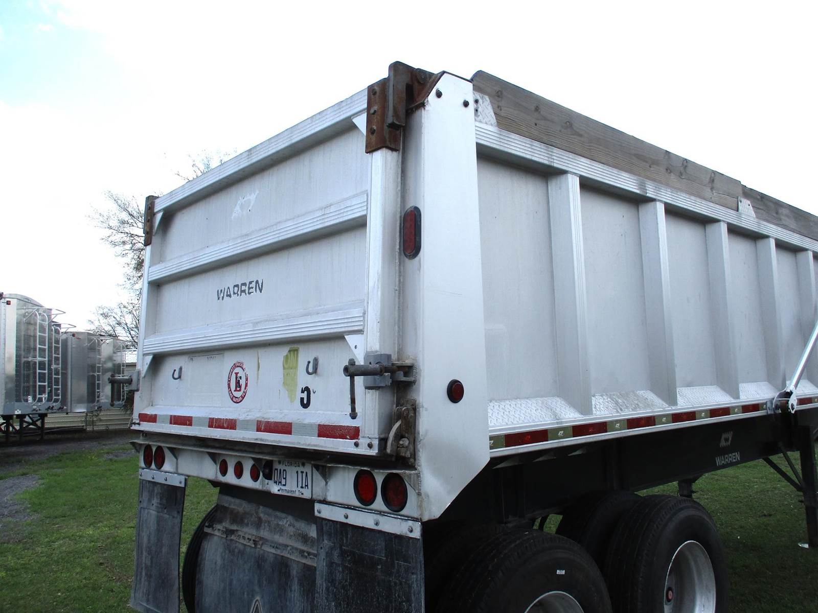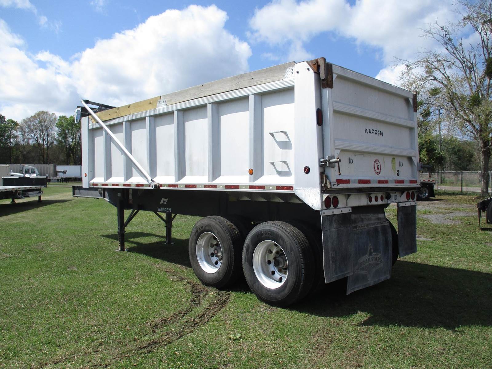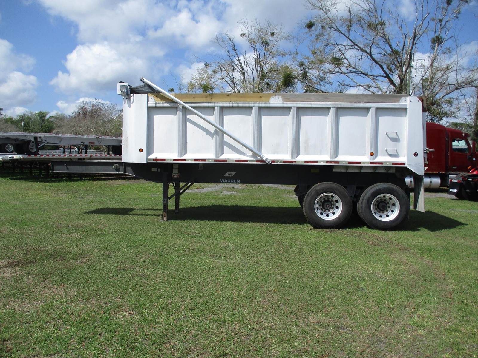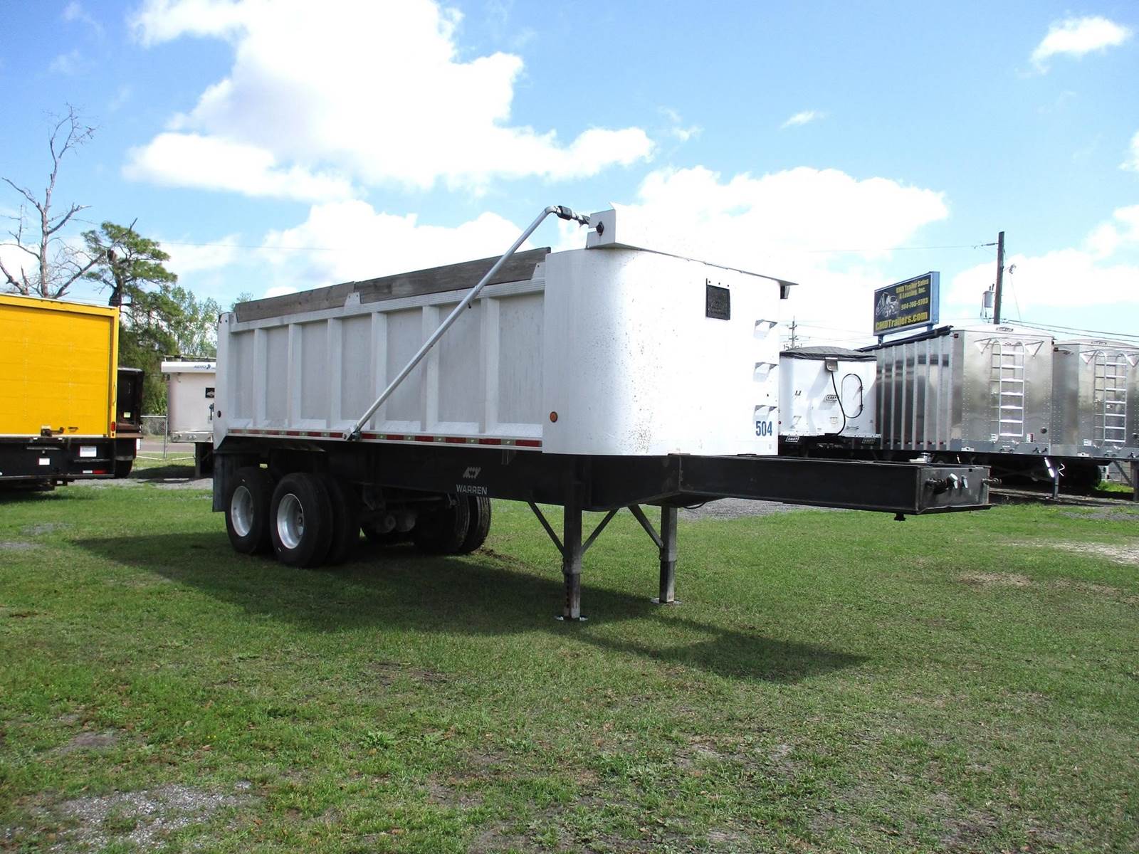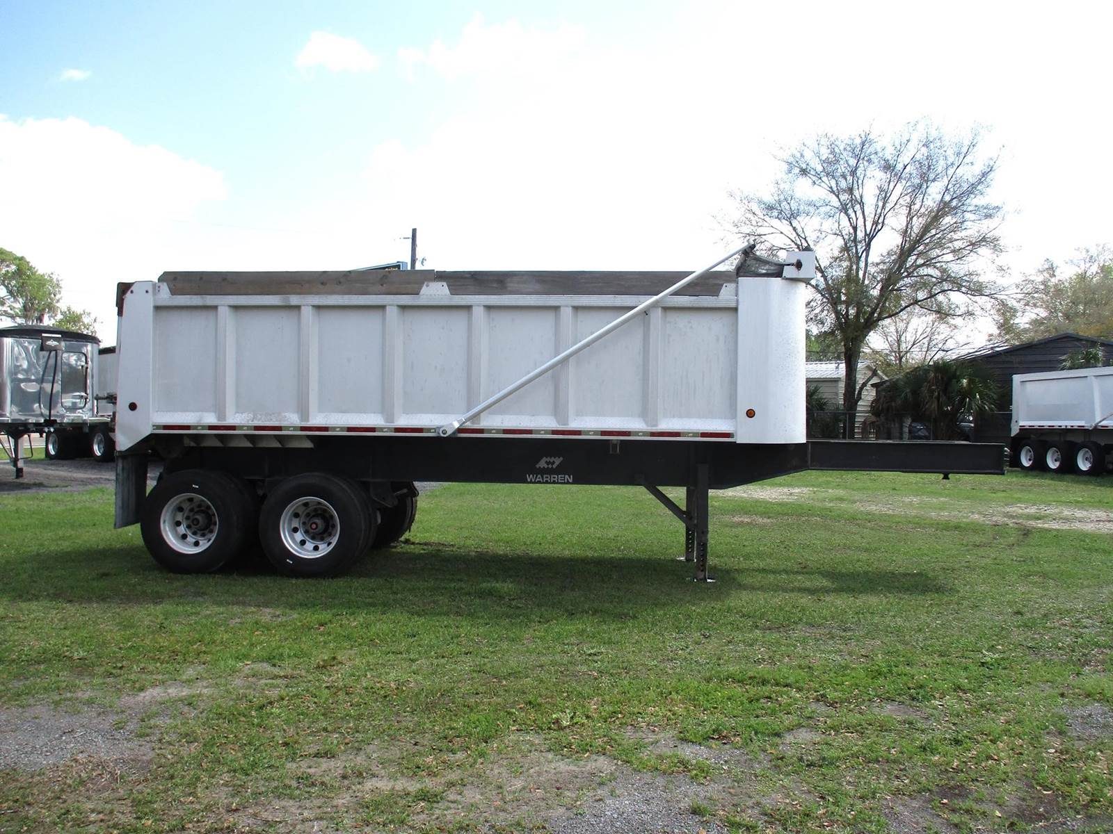 2005 Warren End Dump Trailer | 28 Ft Steel Frame | 22 Ft Aluminum Box | 96 Inches Wide | 60 Inch Inside Wall Height | Top Hinge Tailgate | Tandem Axle | 11R22.5 Tires | Electric Front 2 Back Mesh Tarp |