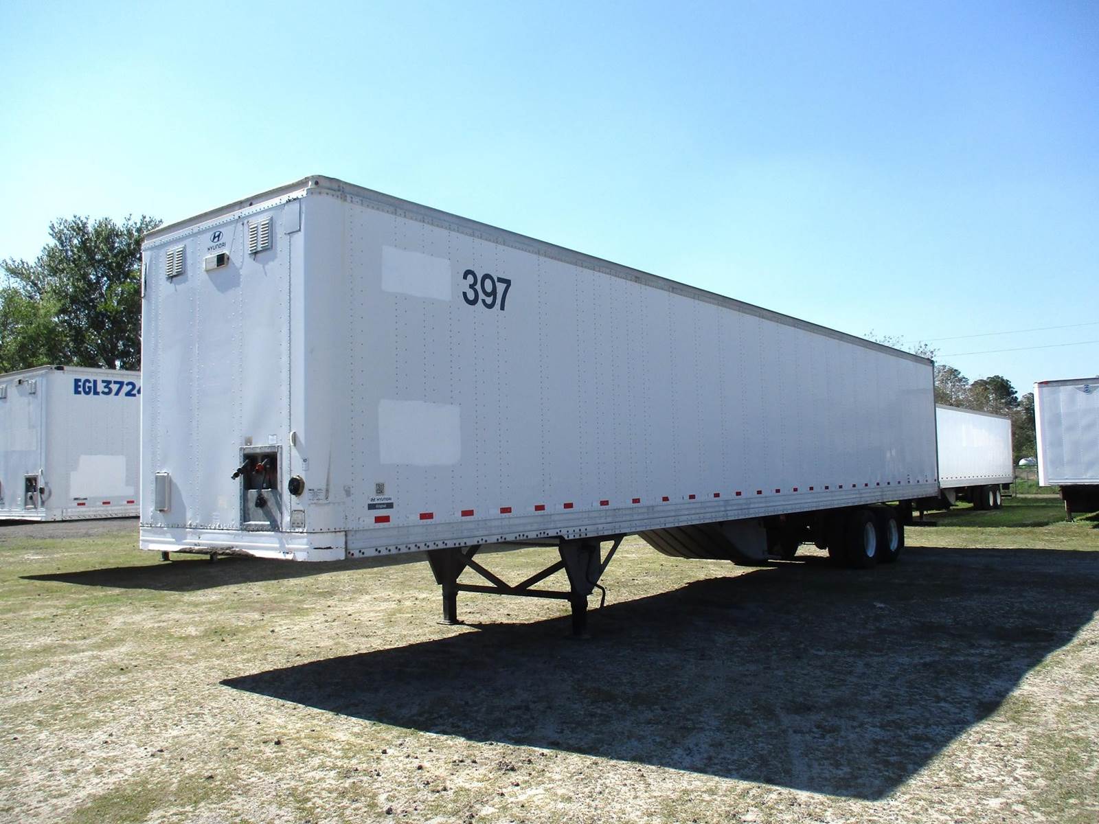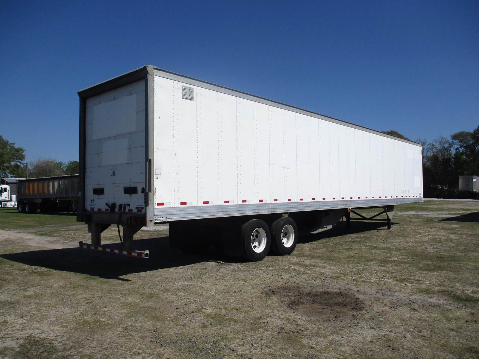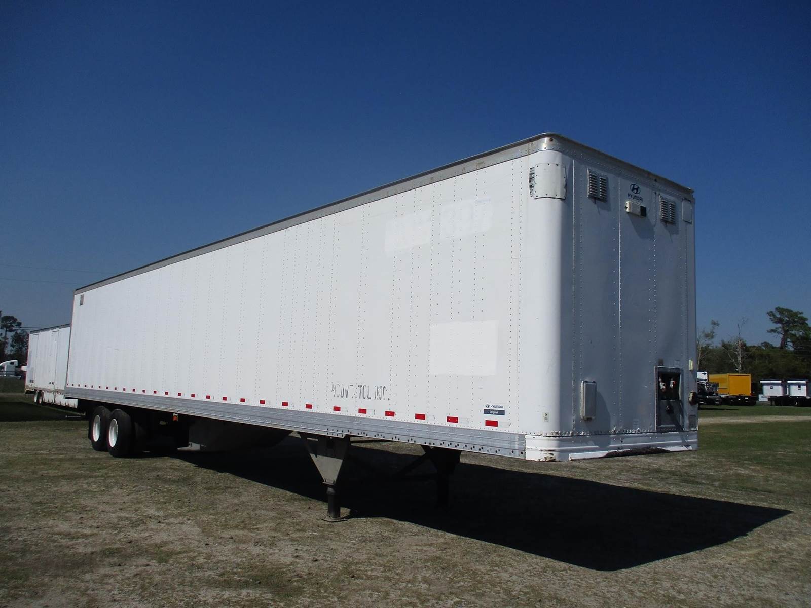 2016 Hyundai 53 Ft Dry Van Trailer | Roll Up Door | Air Ride Suspension | Plywood Lined Interior Walls | Tire Inflation System | 22.5 Steel Wheels With Low Pro Tires | 100 Inch Inside Wall Height | Front Vents | Sliding Tandem Axle |