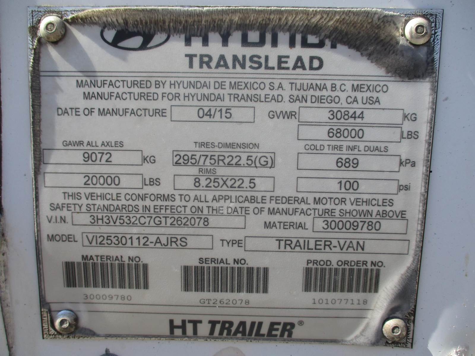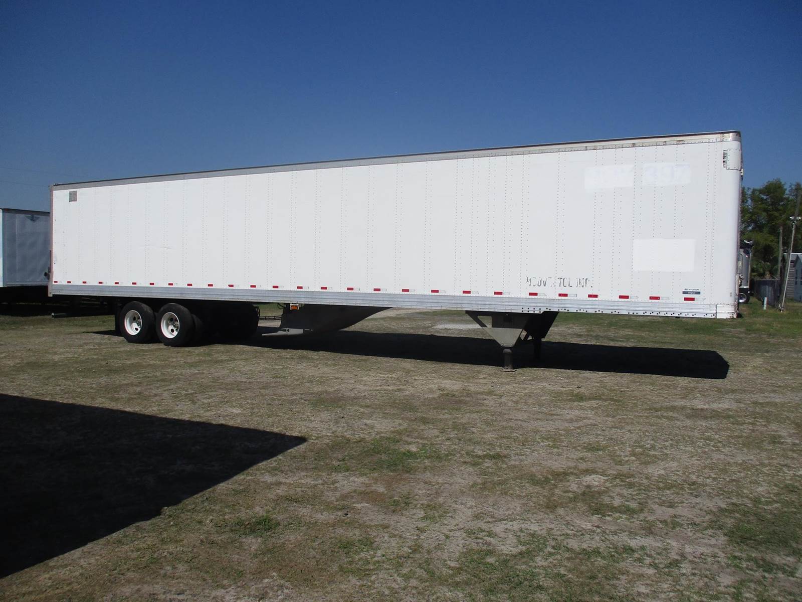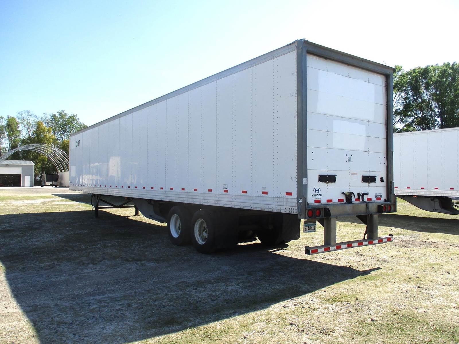 2016 Hyundai 53 Ft Dry Van Trailer | Roll Up Door | Air Ride Suspension | Plywood Lined Interior Walls | Tire Inflation System | 22.5 Steel Wheels With Low Pro Tires | 100 Inch Inside Wall Height | Front Vents | Sliding Tandem Axle |
